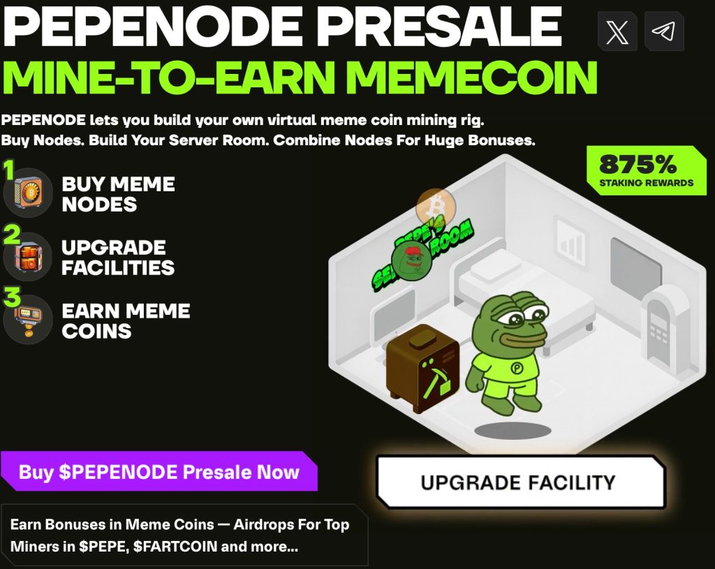 Its appeal lies in gamified mining, where players must think strategically to maximize rewards. Combining the right nodes and refining setups leads to bigger crypto payouts. The better the facility, the greater the chance to score not just the native PEPENODE token but also bonus meme coins like PEPE and FARTCOIN – and potentially other big-name tokens.