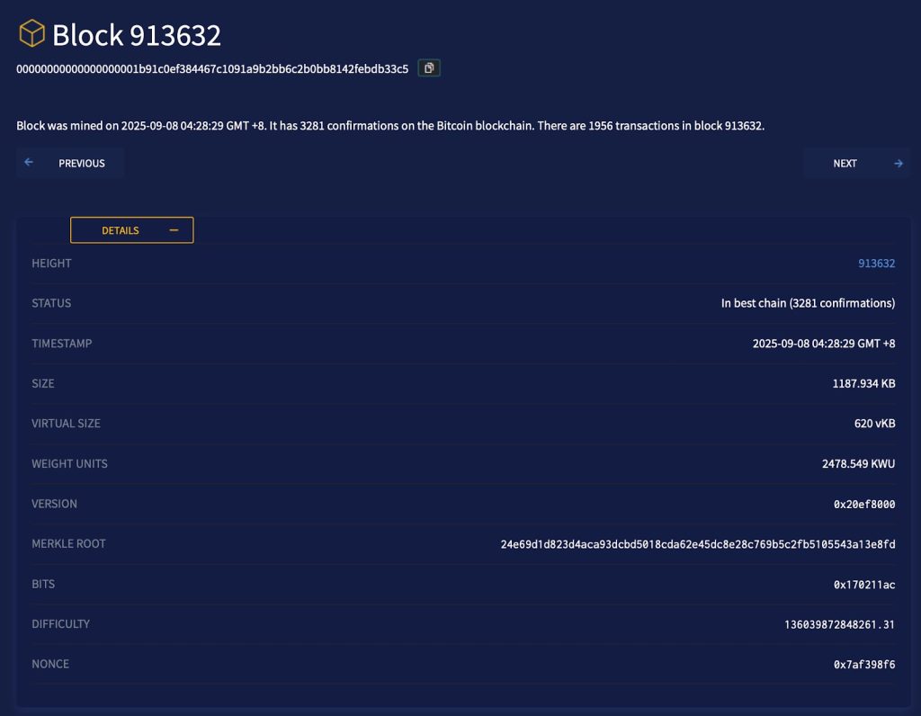 Source: https://btcscan.org/block/00000000000000000001b91c0ef384467c1091a9b2bb6c2b0bb8142febdb33c5?expand