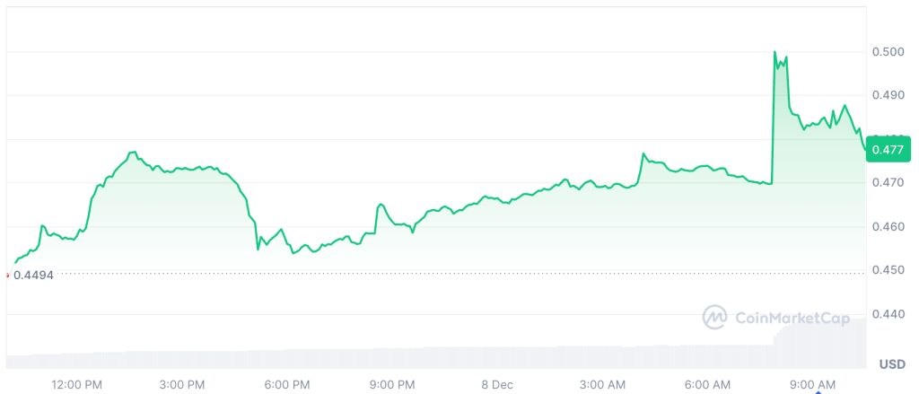 ONDO is trading near $0.48 with an increase of about 8% over 24 hours. Trading activity suggests continued interest in tokenized treasury products, supported by steady demand for yield that connects crypto infrastructure with traditional markets.