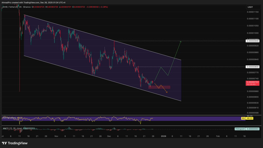 For this bounce to mean anything, price needs to break above $0.00000800 and hold it to confirm a bullish shift. If it fails to do so, SHIB could slide back toward a new low, marked by the red projection, which is the same area where buyers stepped in last time.