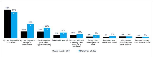 Around 76% of users relied on disposable income, while 25% used long-term savings and 19% used previous investment gains.