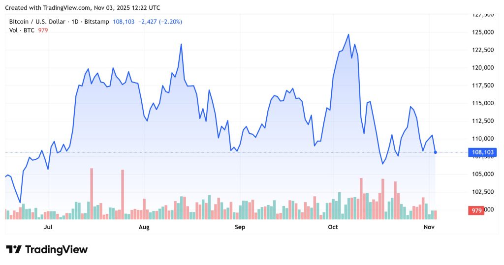 Bitcoin Slips Below $108K as Fed Signals Temper ‘Uptober’ Momentum