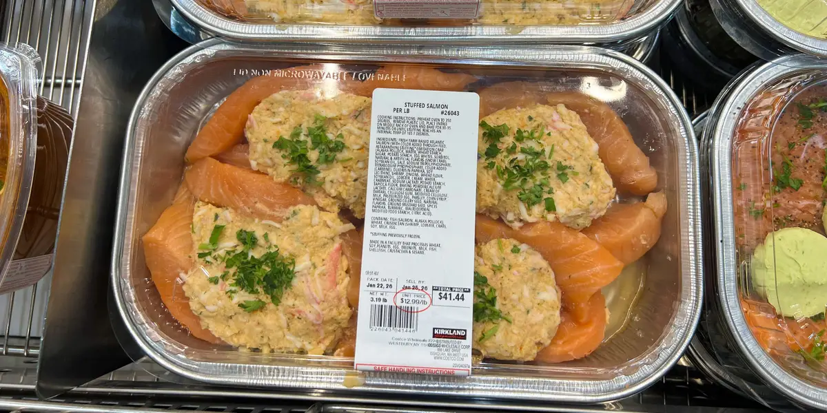 Packages of Kirkland Signature stuffed salmon.