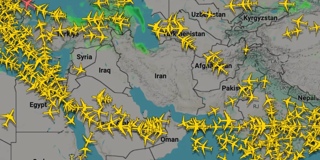 Even for flights that don’t land in the region, it’s a key corridor for flying between Europe and Asia. Some flights appeared to re-route over Saudi Arabia. Other airlines were avoiding the region altogether.