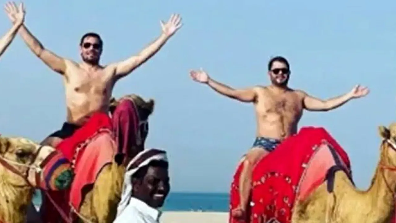 Democrats seen riding camels shirtless during expense-paid trip to Qatar in 2021.