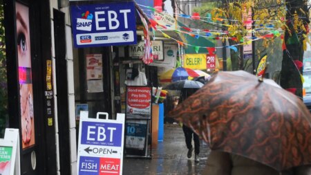 House Speaker Mike Johnson, R-La., briefs the media on the timeline to possibly end the government shutdown in the Capitol Visitor Center in Washington, Nov. 10, 2025. (Tom Williams/CQ-Roll Call, Inc via Getty Images)
