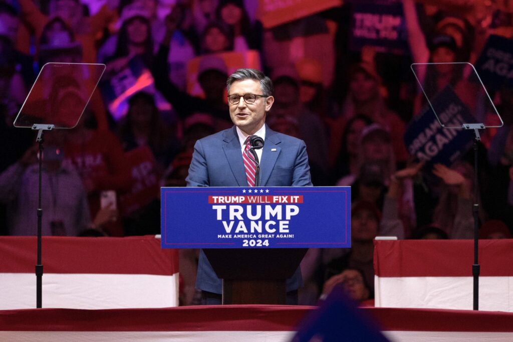House Speaker Mike Johnson, a Republican from Louisiana, speaks during a campaign event with former President Donald Trump, not pictured, at Madison Square Garden in New York on Sunday, Oct. 27, 2024. (Getty Images)