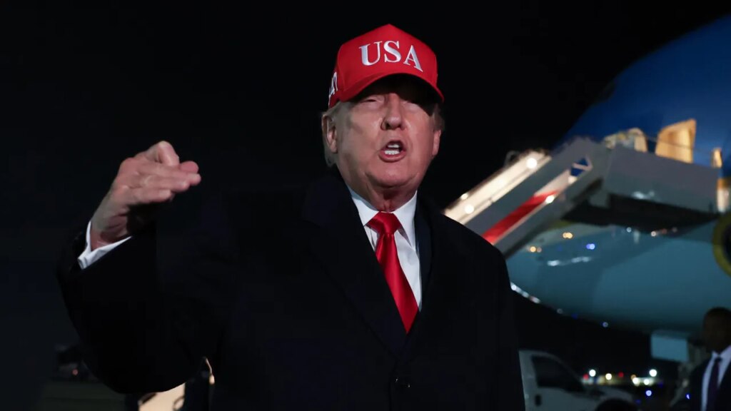 Trump speaking outside Air Force One.